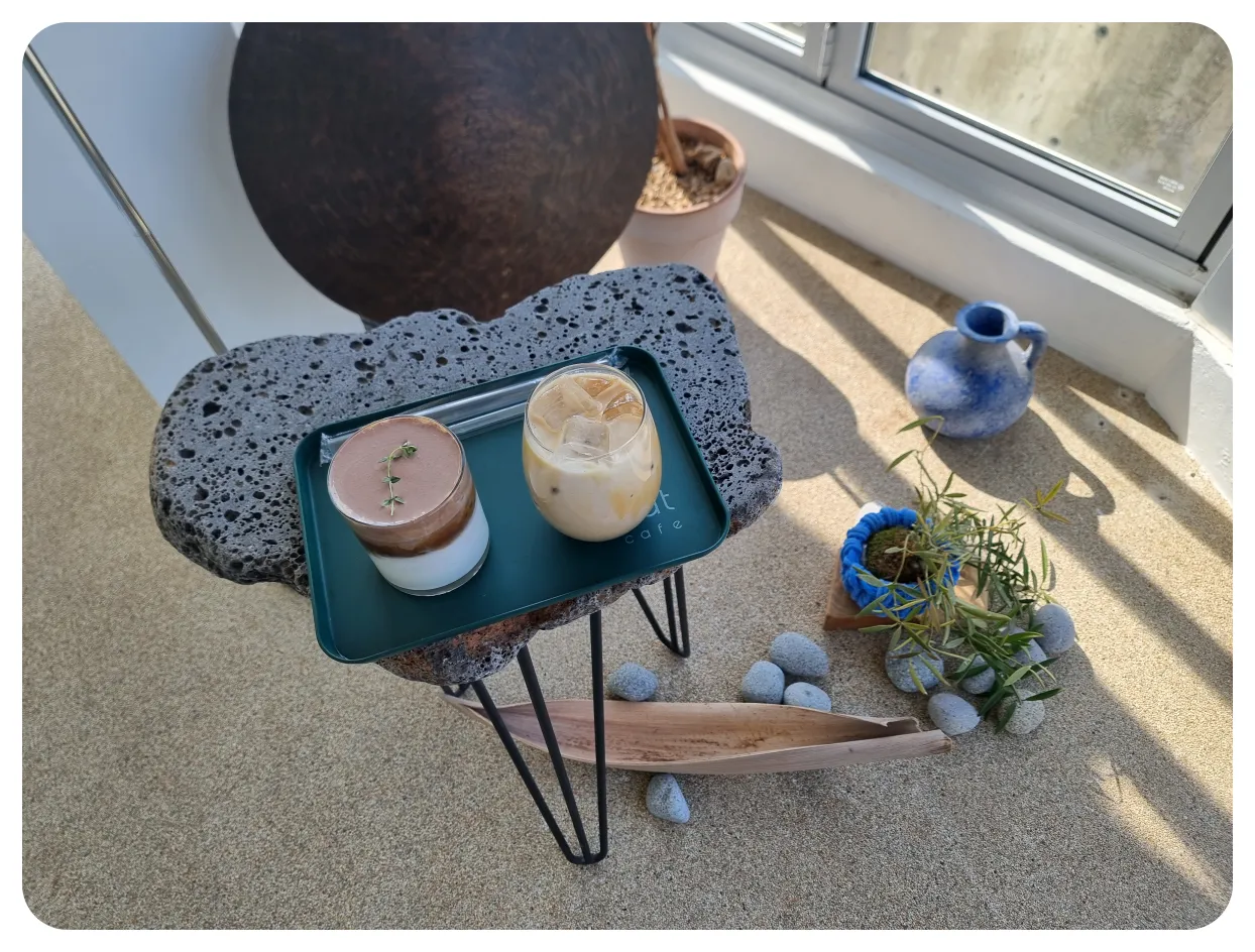 역시 감성적인 인테리어와 분위기를 가진 카페답게 음료의 비주얼도 아주 훌륭했습니다. 그리고 메뉴를 준비해 주시는 테이블도 이렇게 이쁘게 꾸며져 있더라고요. 해당 자리에 음료를 준비해 주셨는데 정말 이쁜 것 같아서 들고 가기 전에 사진으로 남겨봤습니다. 이런 감성들이 저는 정말 좋더라고요 이렇게 꾸미는 것도 대단한 능력이라 생각이 들며 굉장히 부러웠답니다