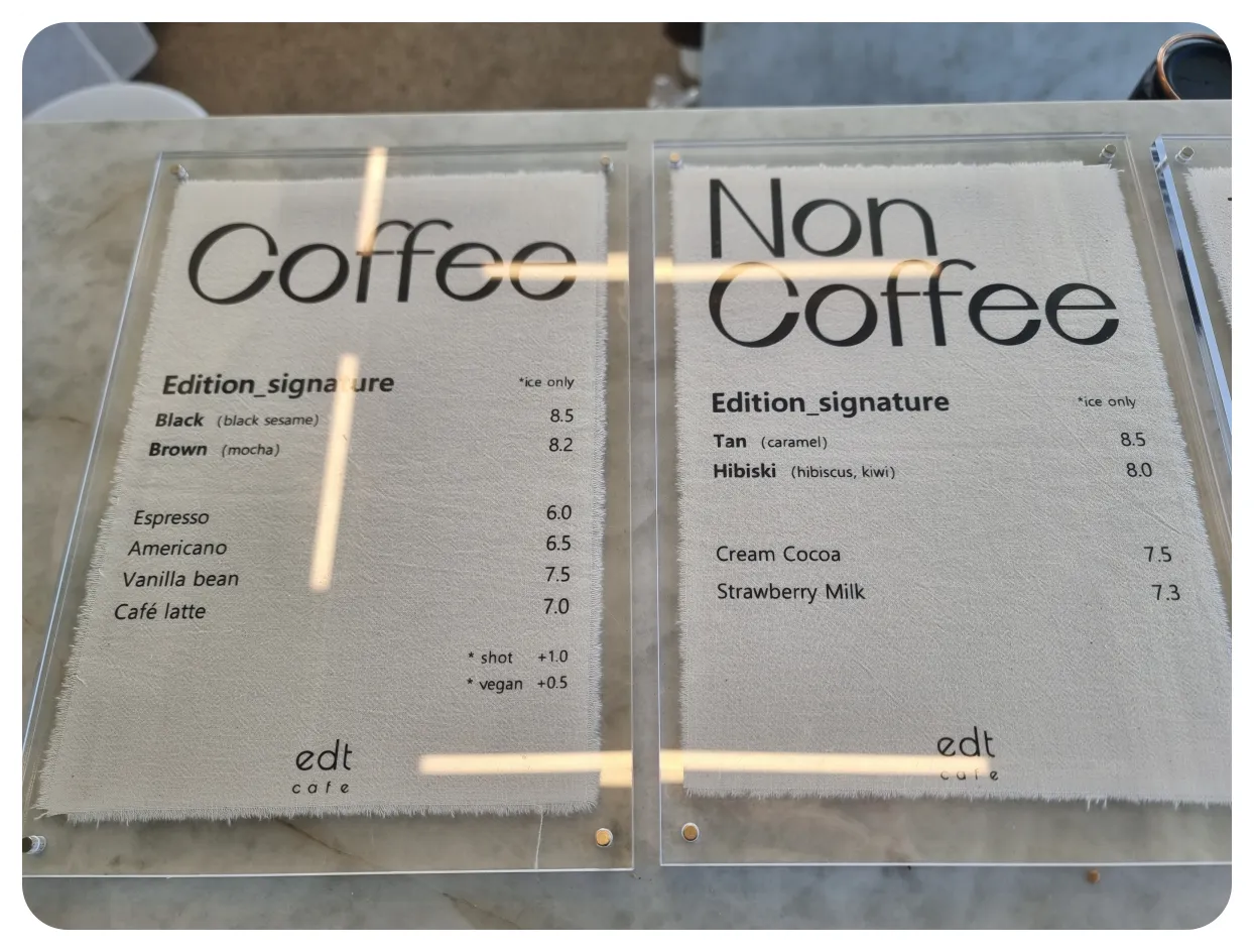 카페 이디티의 메뉴판 소개를 먼저 해볼게요!