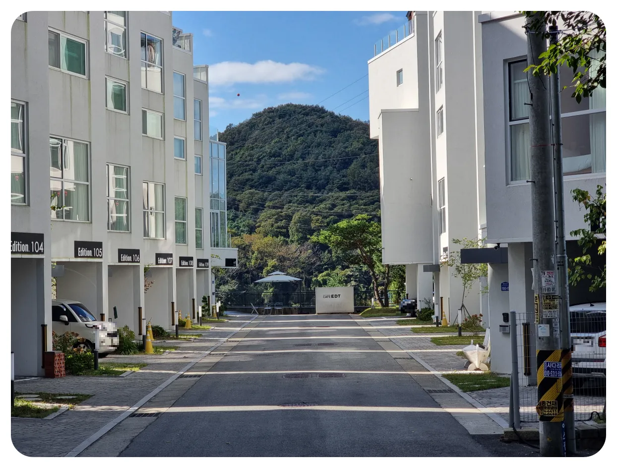 카페 가는 길에 보니까 펜션들이 있더라고요 그래서 보니 에디션리버뷰라는 가족독채펜션 안에 위치해 있는 카페더라고요. 펜션에서 카페도 같이 운영을 하시는 것 같습니다.