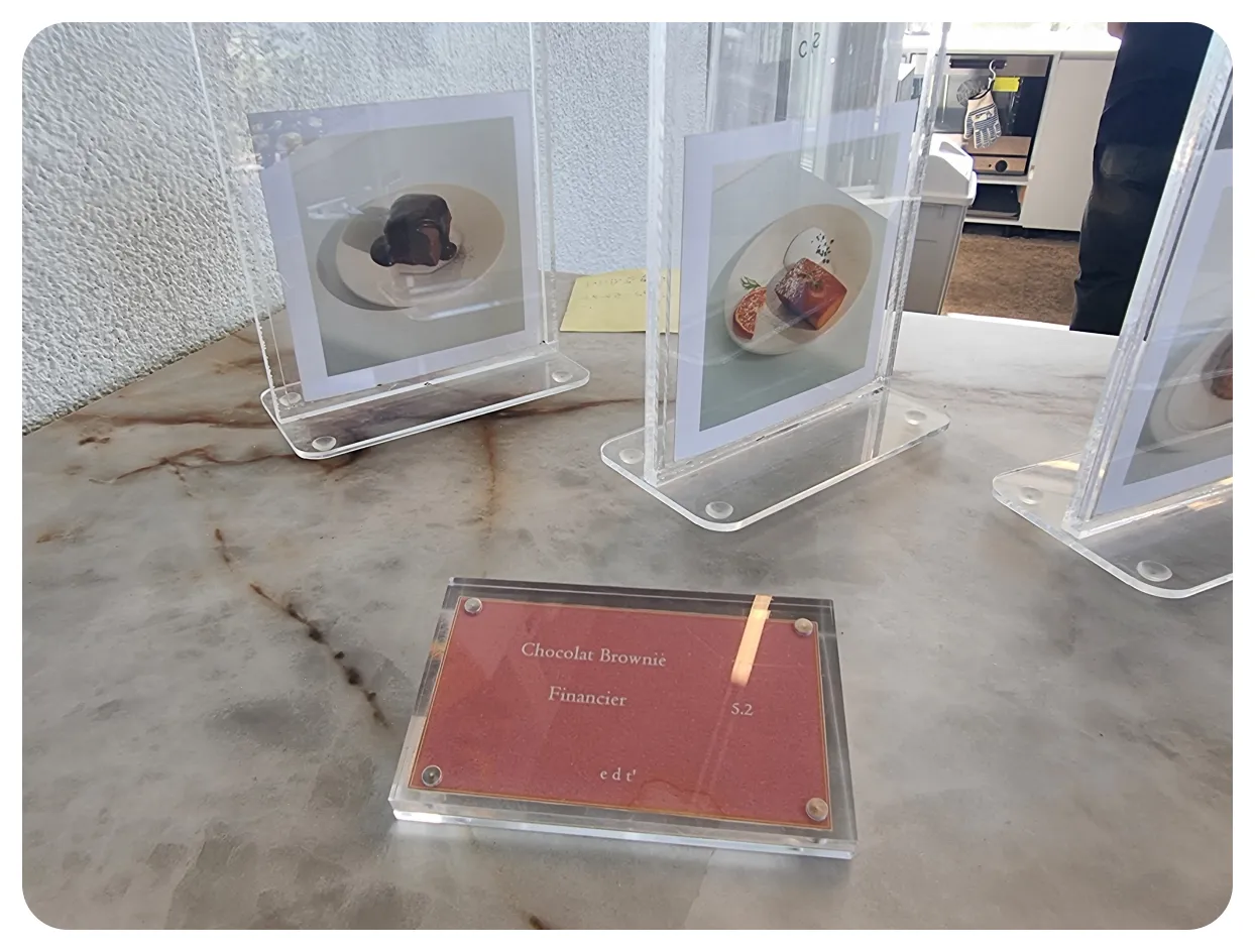 메뉴판을 먼저 소개하고 저희가 마셨던 메뉴도 같이 소개해보겠습니다. 디저트 메뉴들도 사진과 함께 준비가 되어있고요 메뉴 사진들도 정말 감성 있게 설명이 되어있더라고요. 사진과 함께 있어서 메뉴의 비주얼을 직접 확인할 수 있어서 정말 좋았습니다.