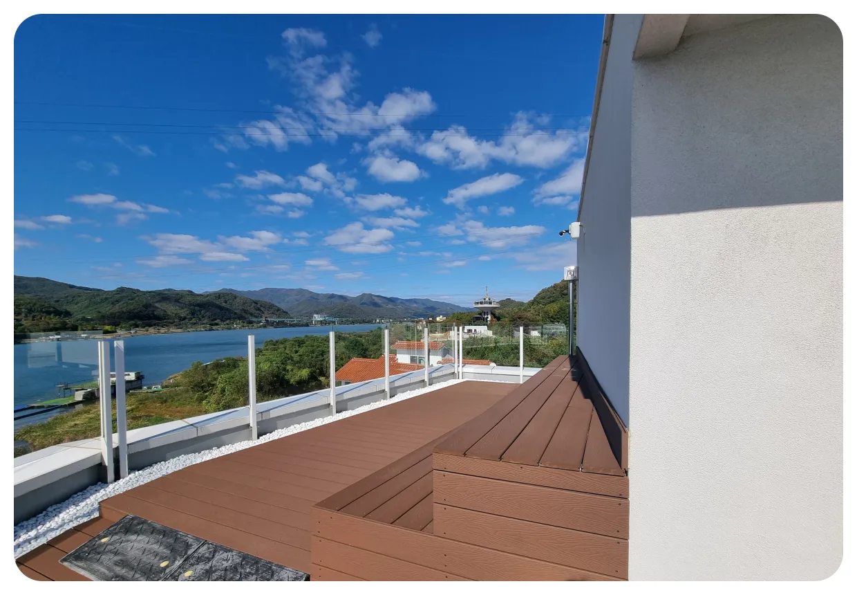 이제 이곳이 루프탑입니다 이곳은 테이블은 따로 준비는 되어있지 않고 사진 찍으러 많이들 오시는 것 같아요 북한강 구경도 한실결 해서 많이들 오시더라고요 그래서 저도 풍경사진을 한번 찍어봤습니다. 이곳에서 포토스폿으로 사진 찍으면 이쁜 사진들 많이 나올 수있겠다라는 생각이 들었던 장소였습니다.
