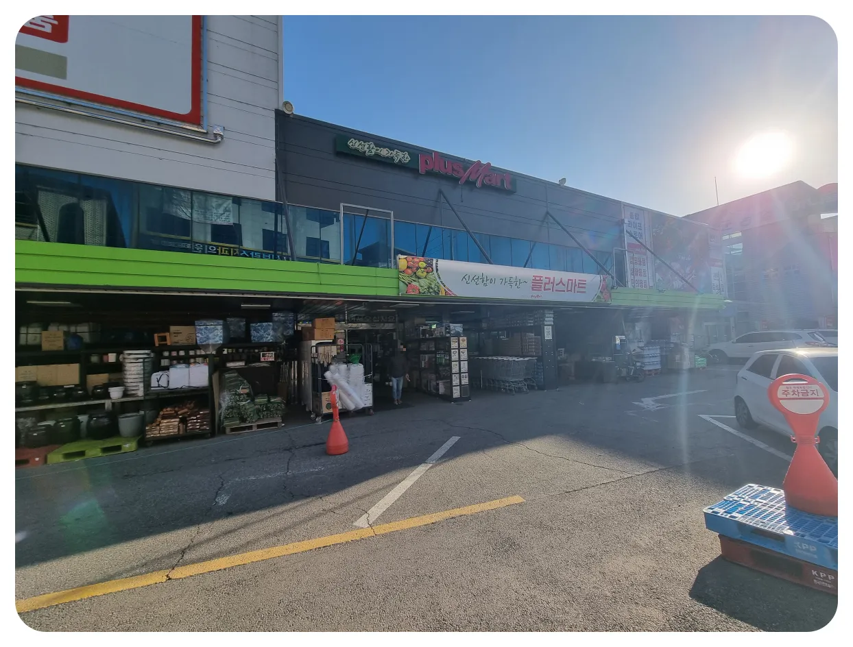 앞서 보셨던 것처럼 옆에는 가평군 농협 및 하나로마트도 보이는데 아무래도 주차장이 플러스마트가 더 잘되어있는지 많은 분들이 방문을 하시더라고요. 마트도 마트지만 방문하시는 분들은 아무래도 주차공간이 더 넓고 편한 매장을 방문하시는 게 편하다 보니 이렇게 오시는 것 같았습니다