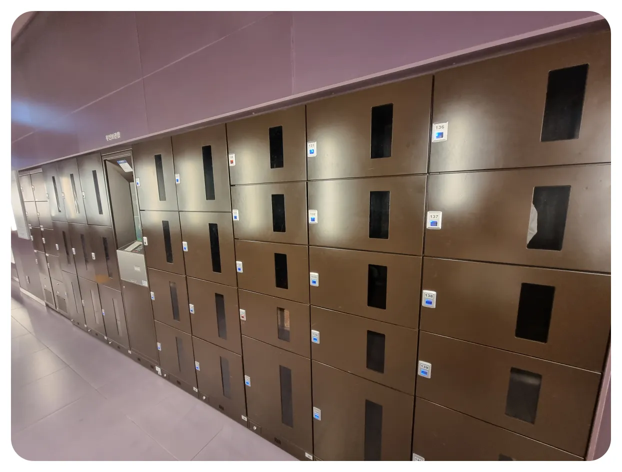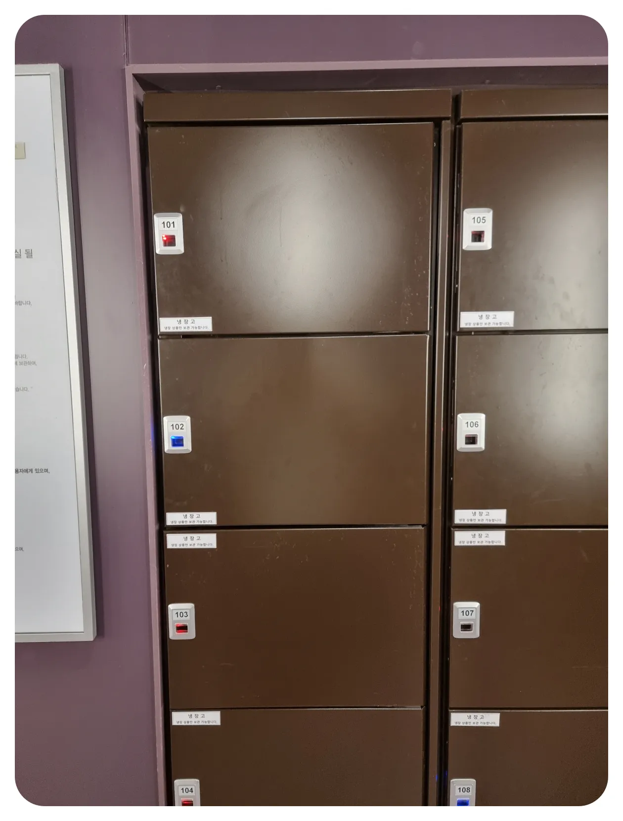 앞선 사진에서 보신 것처럼 보관함 사이즈가 종류별로 나눠져 있기 때문에 보관함 크기를 보시고 이용하시면 좋을 것 같아요.