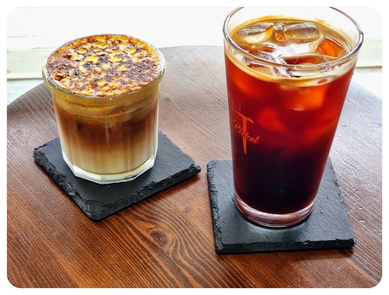 드디어 저희가 주문한 2가지 메뉴 아메리카노 와 슈크림브륄레라떼 가 준비되었습니다