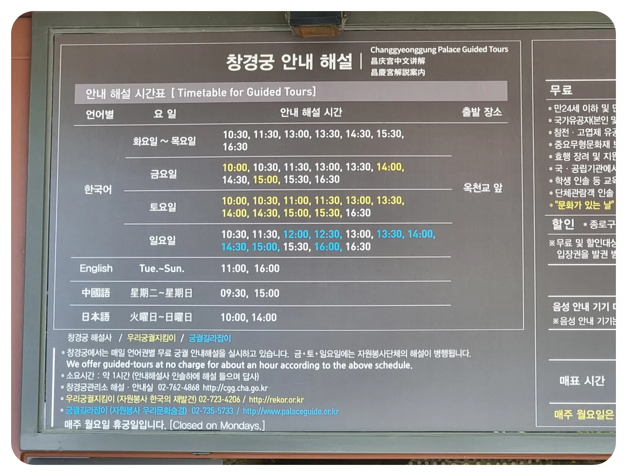 창경궁 입장료 및 안내해설 시간 안내