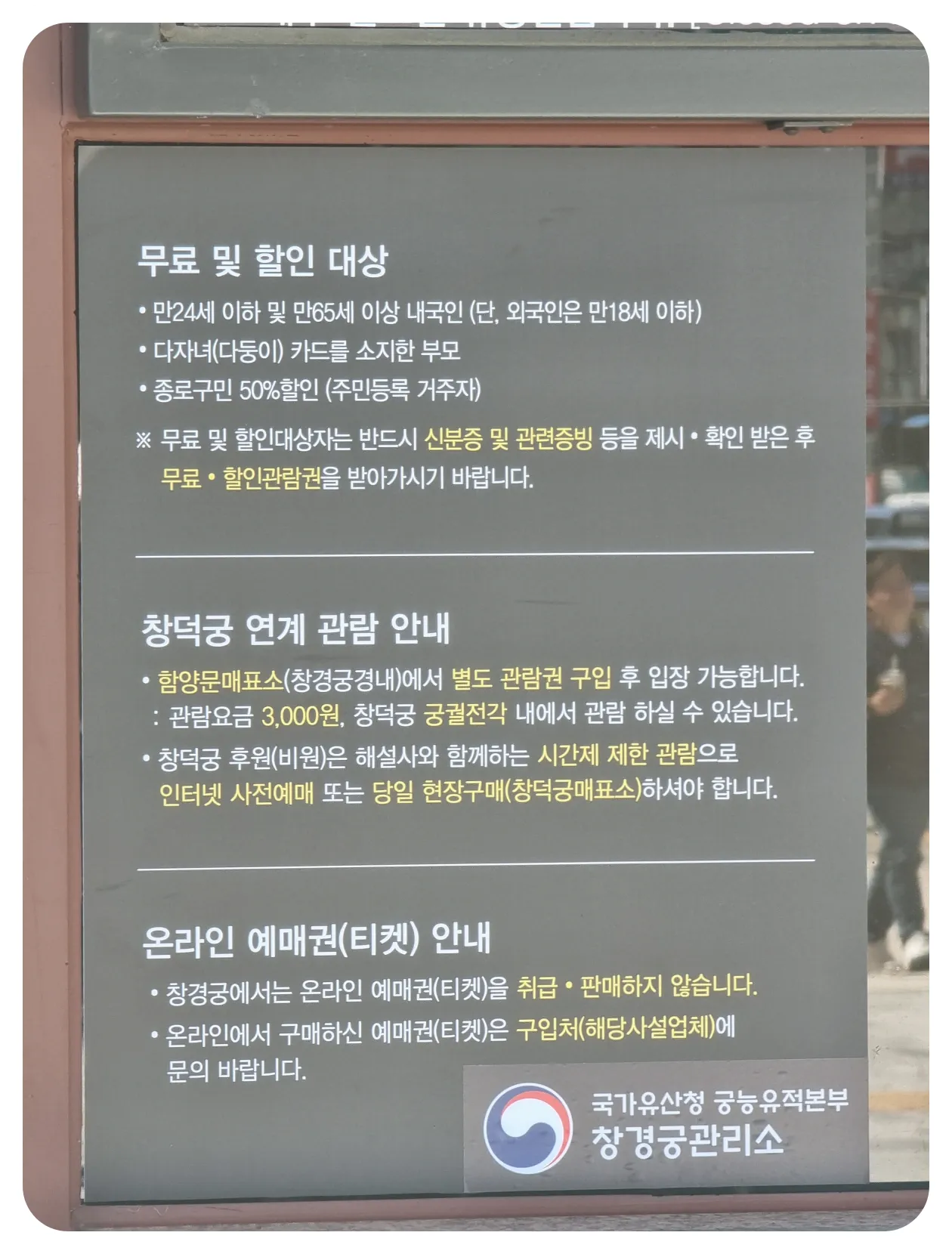 창경궁에서는 온라인 예매권(티켓)을 취급·판매하지 않습니다.