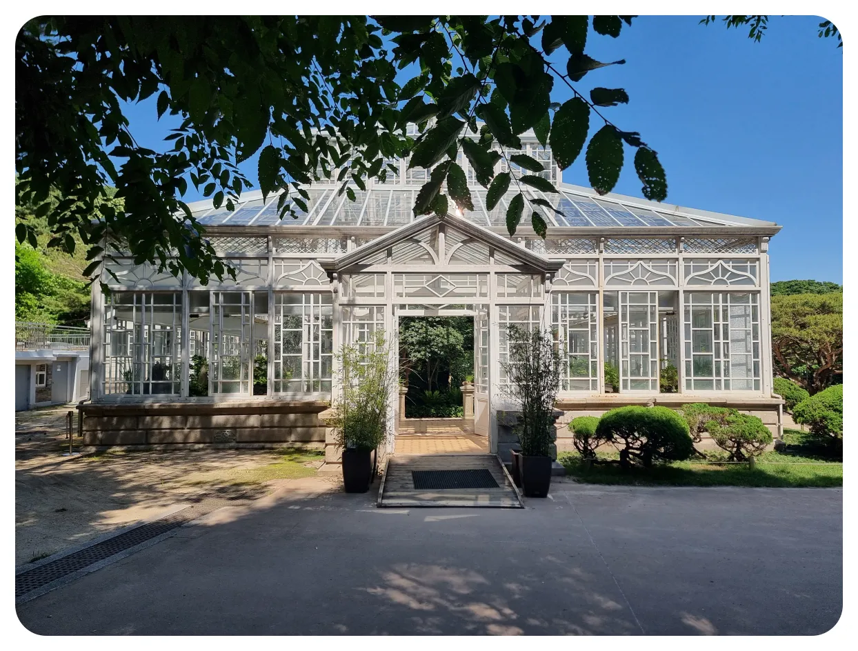 천천히 산책하면서 걸어가던 끝에 만나게 된 대온실 너무나도 아름다웠던 건축물이였습니다.