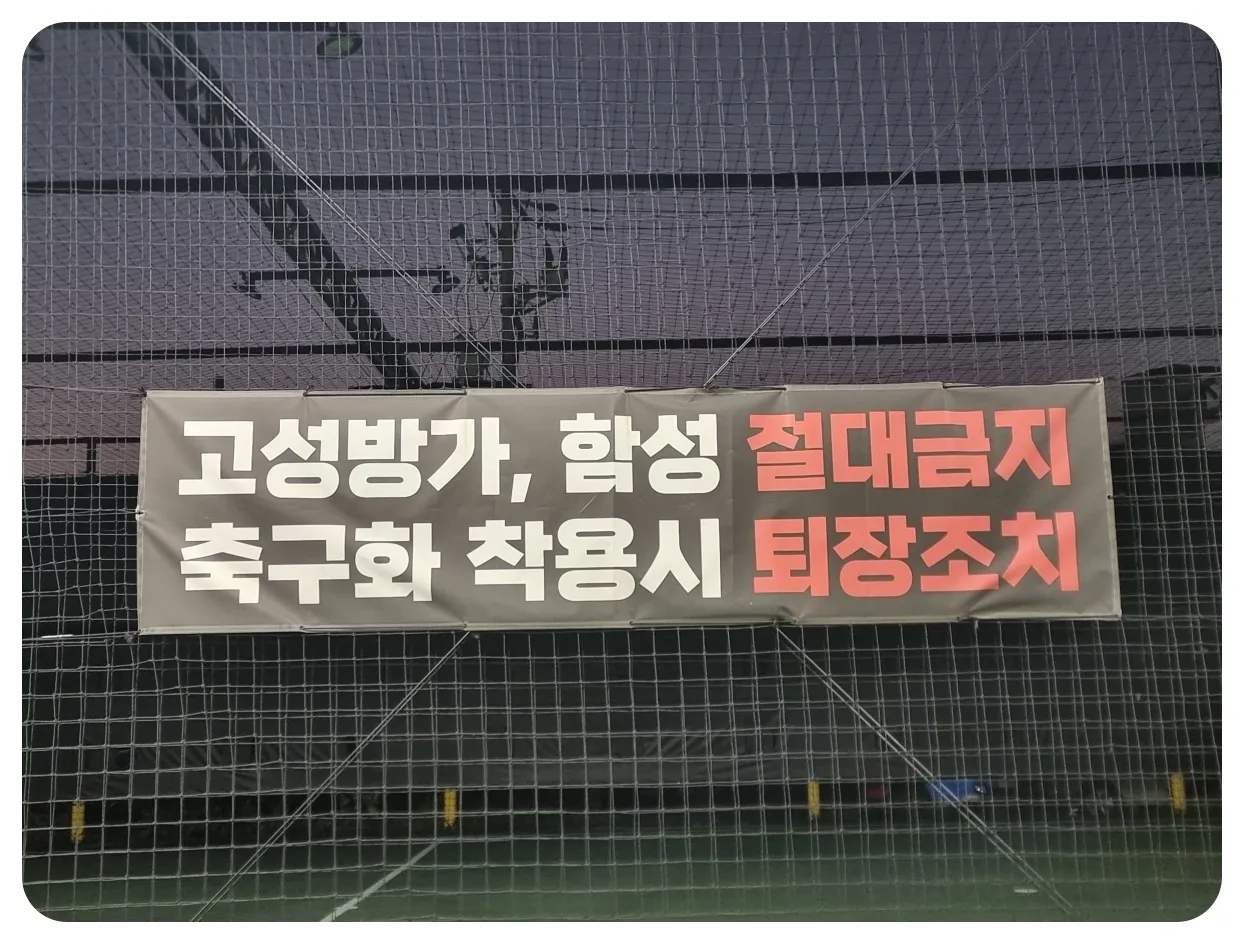 | 풋살화 착용 | 잔디 보호 및 부상 방지를 위해 스터드가 있는 축구화(SG, FG, HG, AG) 착용 금지, 풋살화(TF) 착용 필수 |