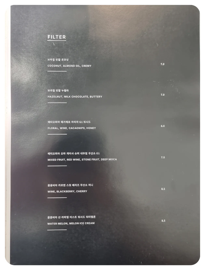 기본적인 메뉴의 집중하며 필터커피 핸드드립도 같이 준비가 되어있어서