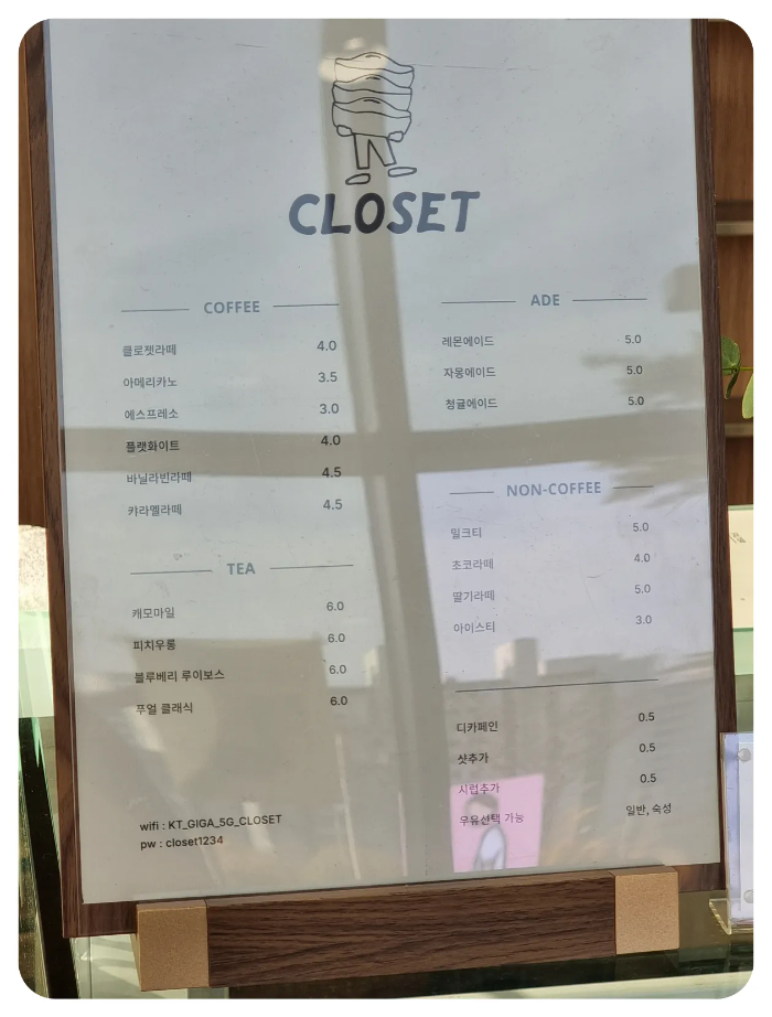 카페 클로젯 영업시간 및 위치