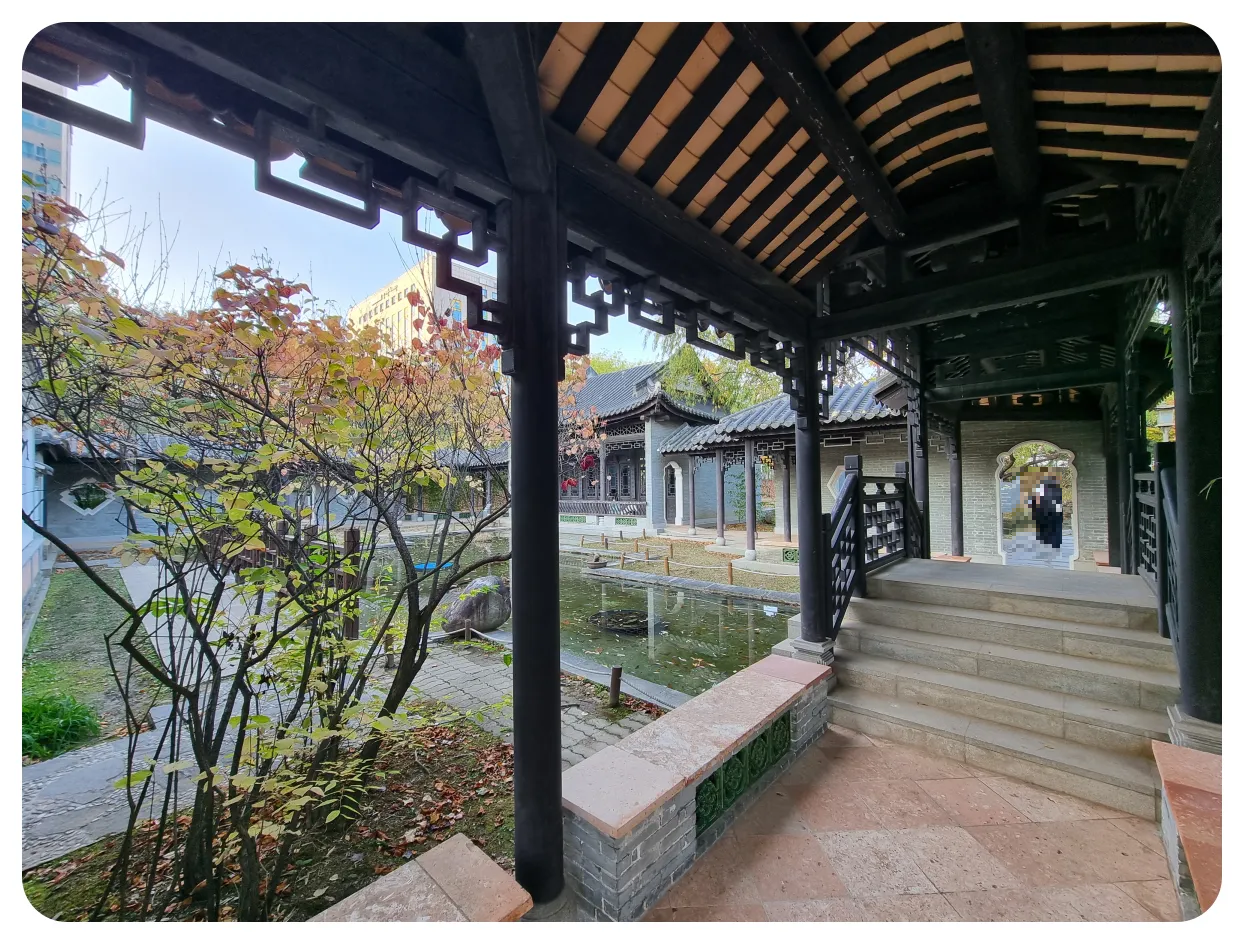 전통 광둥 지역 정원의 특색을 살렸습니다. 곳곳에 한시가 새겨진 건물들은