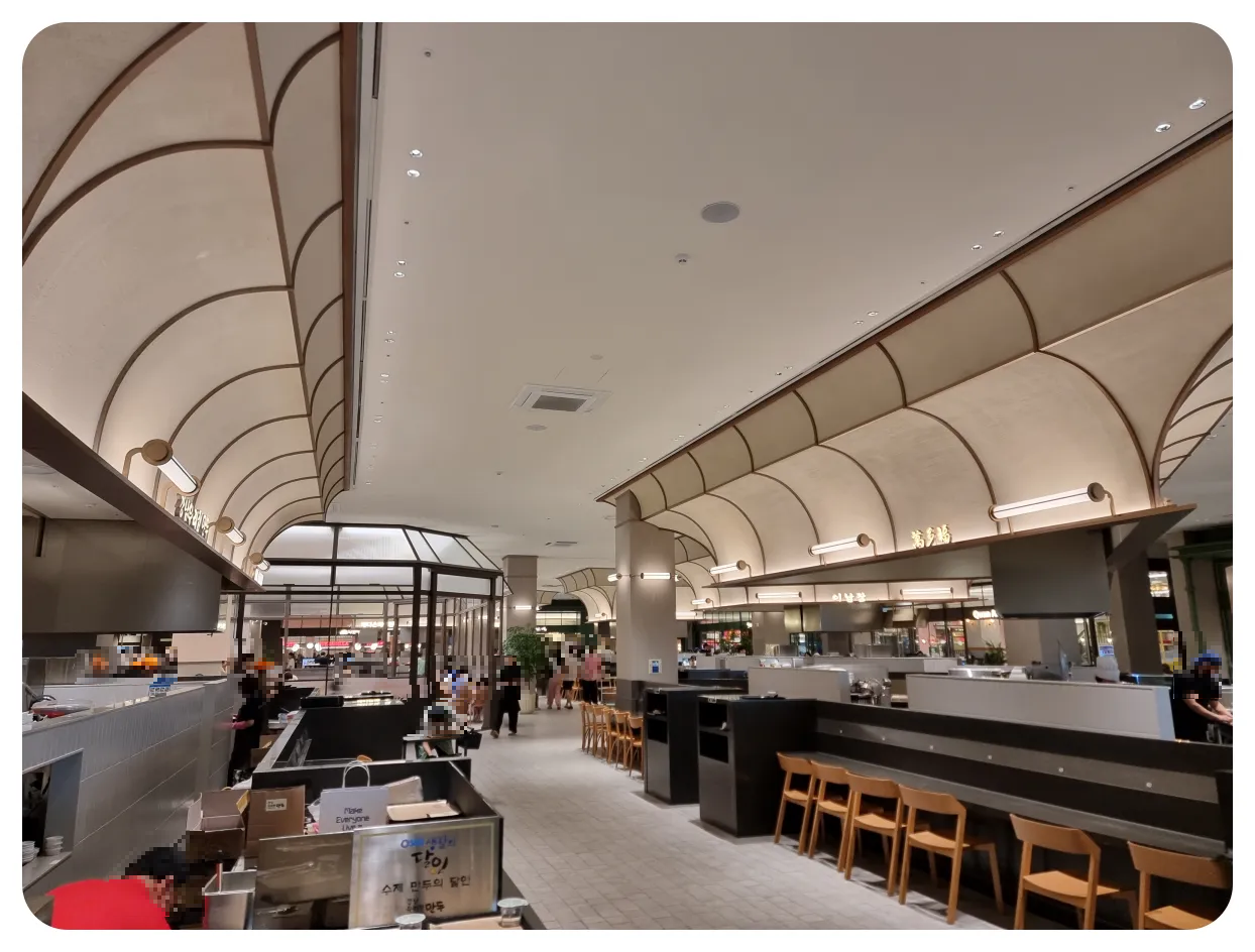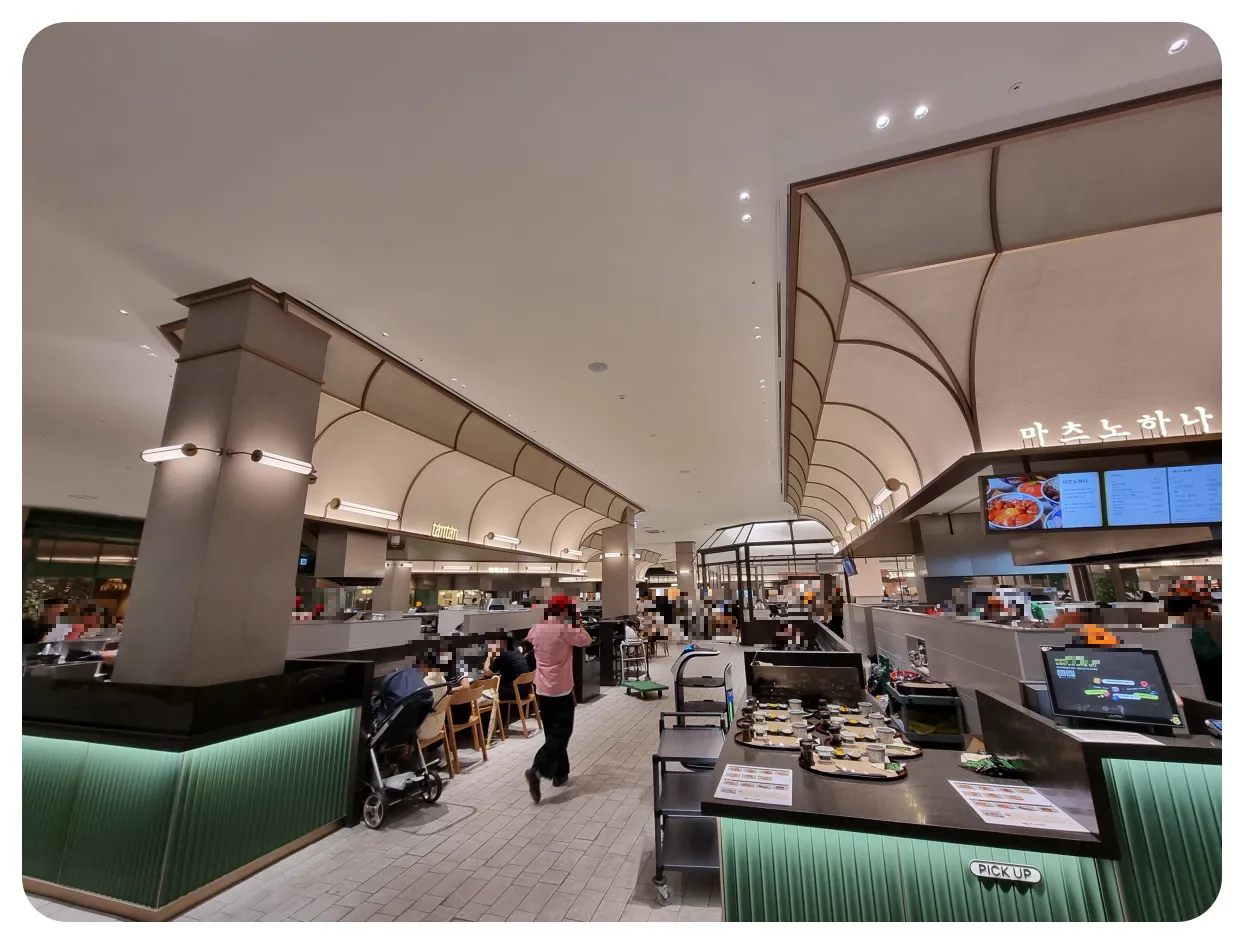 역시 인기있는 쇼핑복합시설 답게 식당가에도 손님분들이 많이 계셨었습니다 많은 분들이 이용하시는 공간답게 내부 공간도 아주 넓었고 다양한 식당들이 준비가 되어있었습니다.