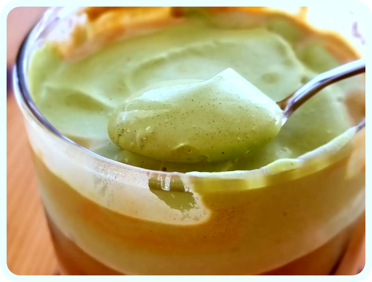 제가 티스푼으로 한번 떠 봤습니다. 정신없이 마시고 난 뒤라 크림 양이 조금 줄기는 했지만 그래도 보이시나요! 저 말차크림의 꾸덕함이 느껴지시나요! 진짜 맛있는 크림을 오랜만에 맛본 것 같아서 기분이 매우 좋았습니다. 다들 저와 비슷하시겠지만 맛있는 거 먹거나 마시면 기분이 좋잖아요! 물론 달달함이 한몫 더 같이 해줬답니다.