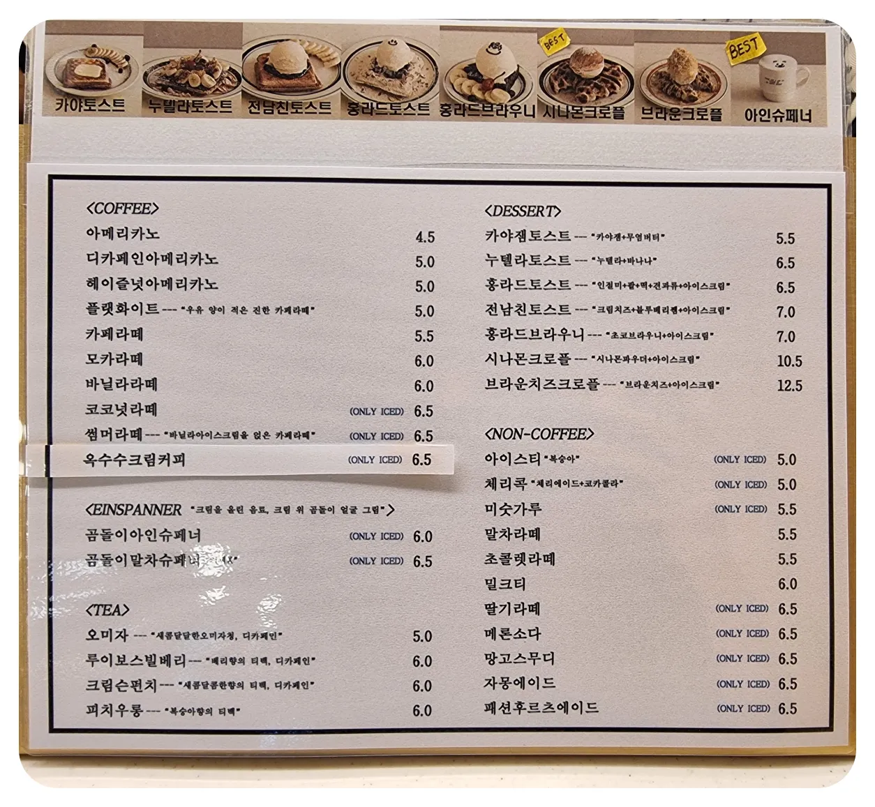 다양한 토스트 종류와 크로플 종류가 준비되어있더라구요 저는 이번에 주문했던 메뉴는 디카페인 아메리카노 아이스 와 그 유명한 전남친토스트를 주문을했습니다