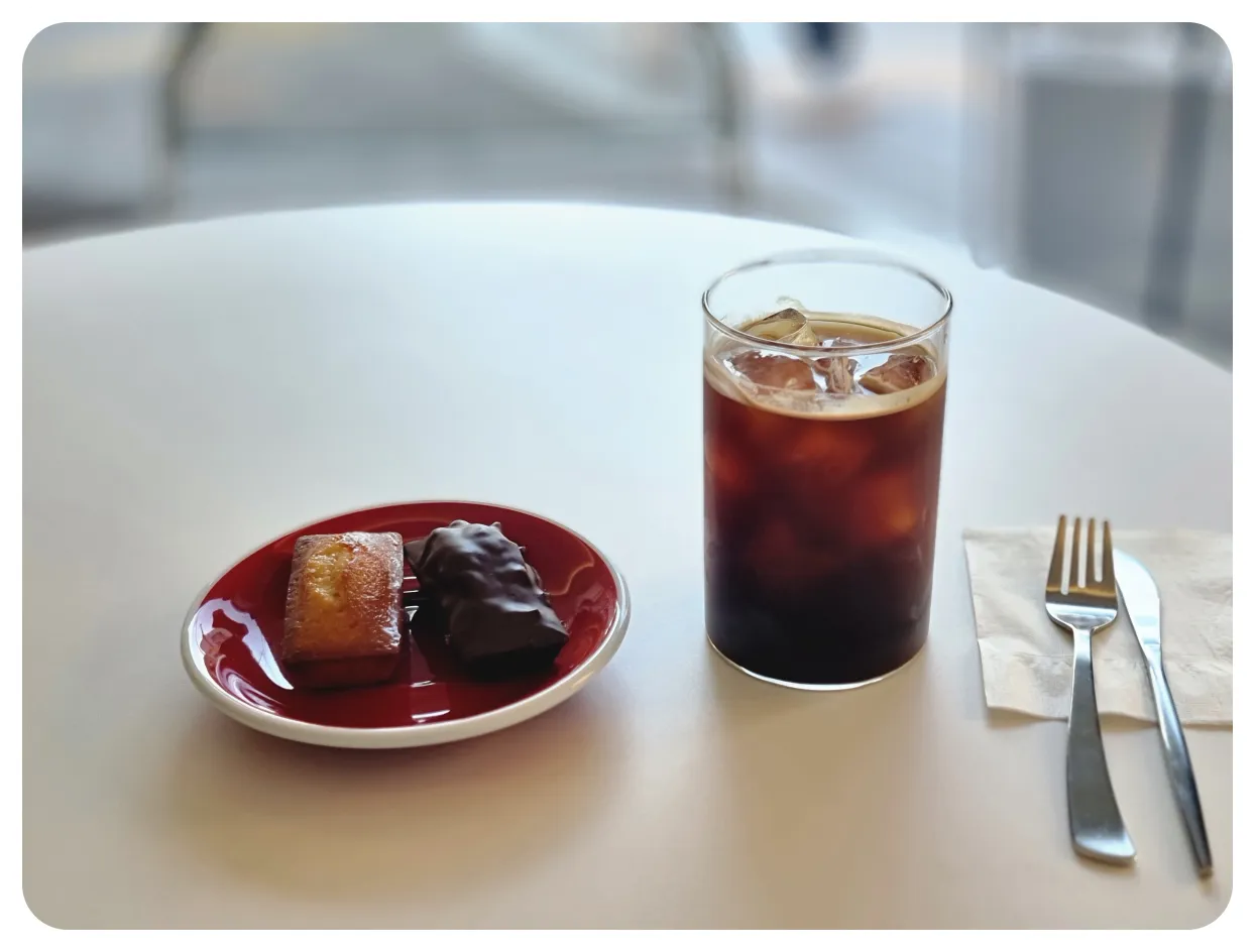 역시 휘낭시에는 1개만 먹기에는 너무 아쉽지않나요!? 저만 그런건가요 저는 그래서 후회가 남지 않게 2개를 구매했고 음료는 아메리카노 아이스 ( 3,000원 ) 으로 주문을 했었습니다