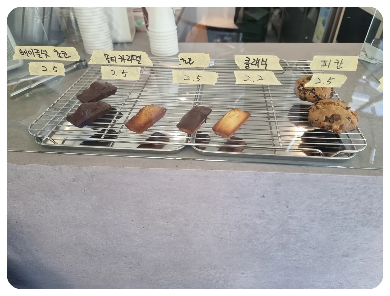 퍽퍽하지 않고 속이 촉촉했던 휘낭시에 두개 다 맛있었지만 둘중 하나를 선택하자면