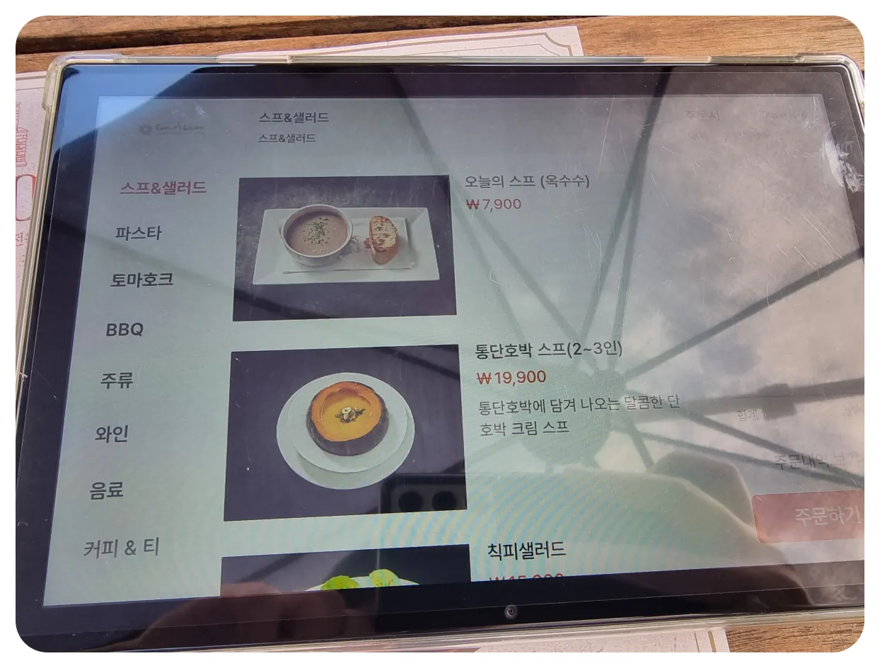 그리고 이곳 유니스의정원에서는 앉은자리에서 주문이 가능했는데 바로 태블릿으로
