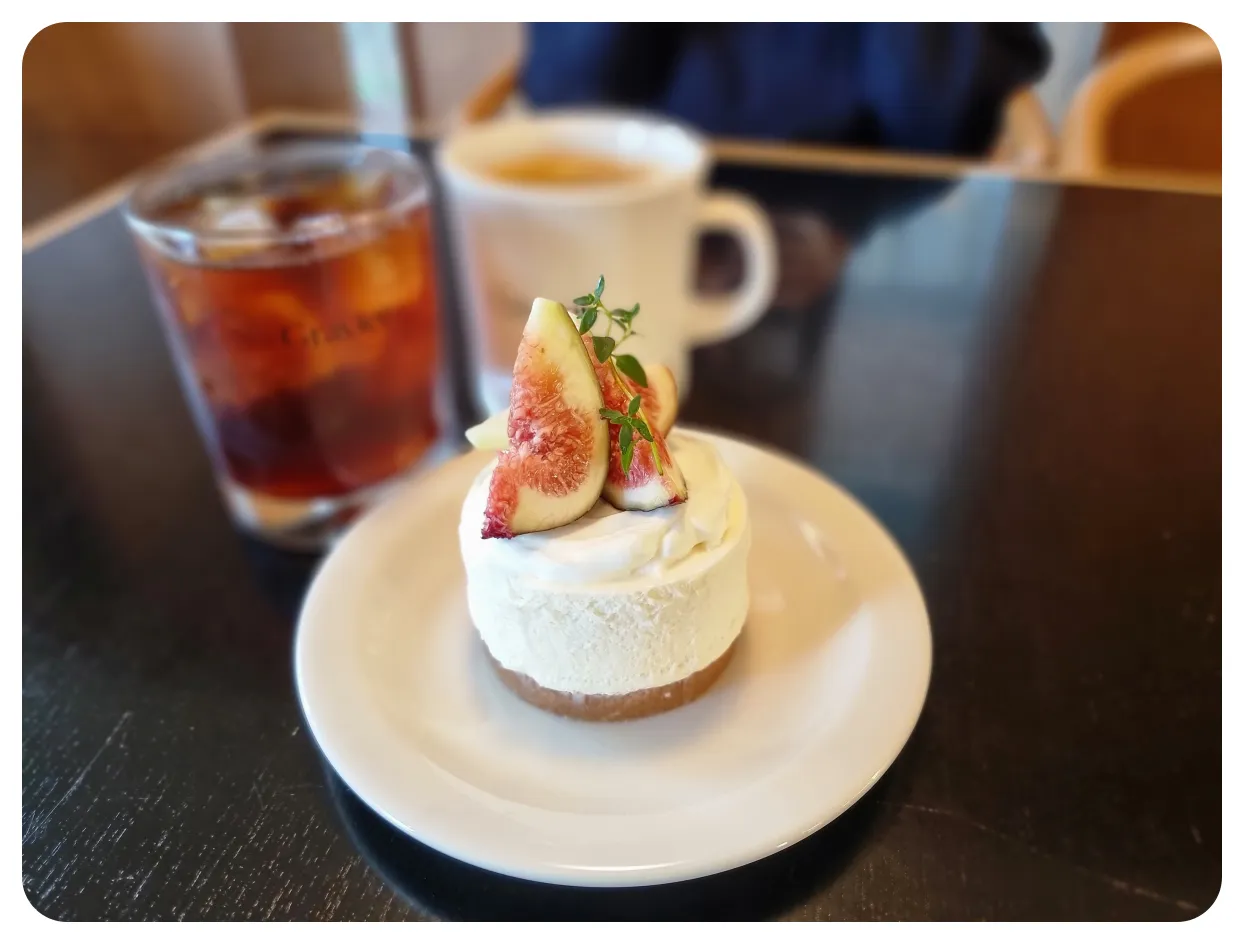 그리고 케이크 위에도 무화과가 준비되어 있지만 사진에서 보이는 것처럼 케이크를 가로로 잘랐을 때 중앙에 있는 무화과 가 보이실 거예요 넉넉하게 과일을 준비해 주셨던 그라비에 카페였습니다 확실히 요거트 와 과일의 조합이 정말 좋았던 메뉴였고 주변 지인들에게 안양 인덕원 동편마을에 놀러 간다면 이곳 그라비에를 방문해 보라고 강력히 추천드리고 싶은 디저트였습니다.