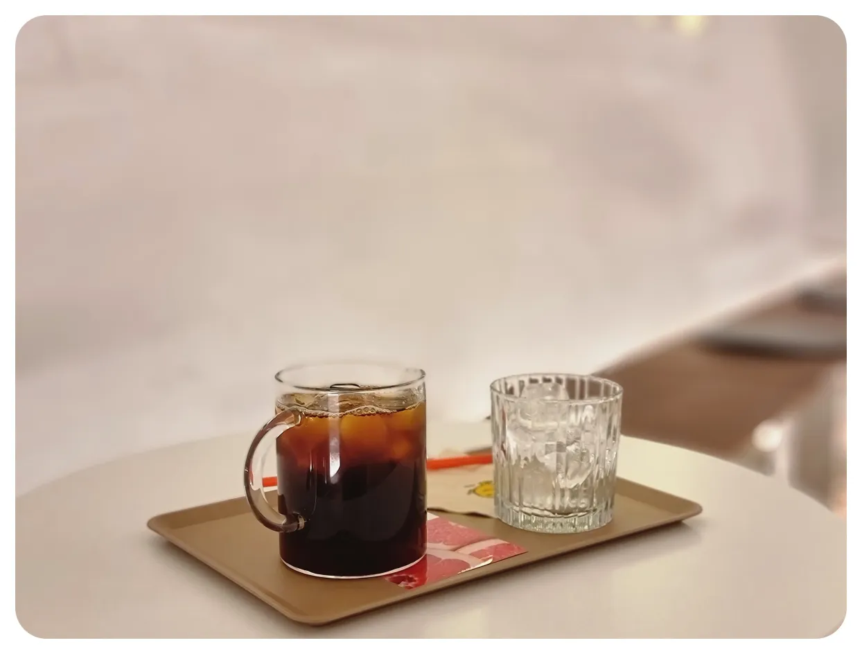 아이스로 주문을 한 드립커피 ( 8,500원 ) 계속해서 시원하게 마실수있게 얼음잔도 같이