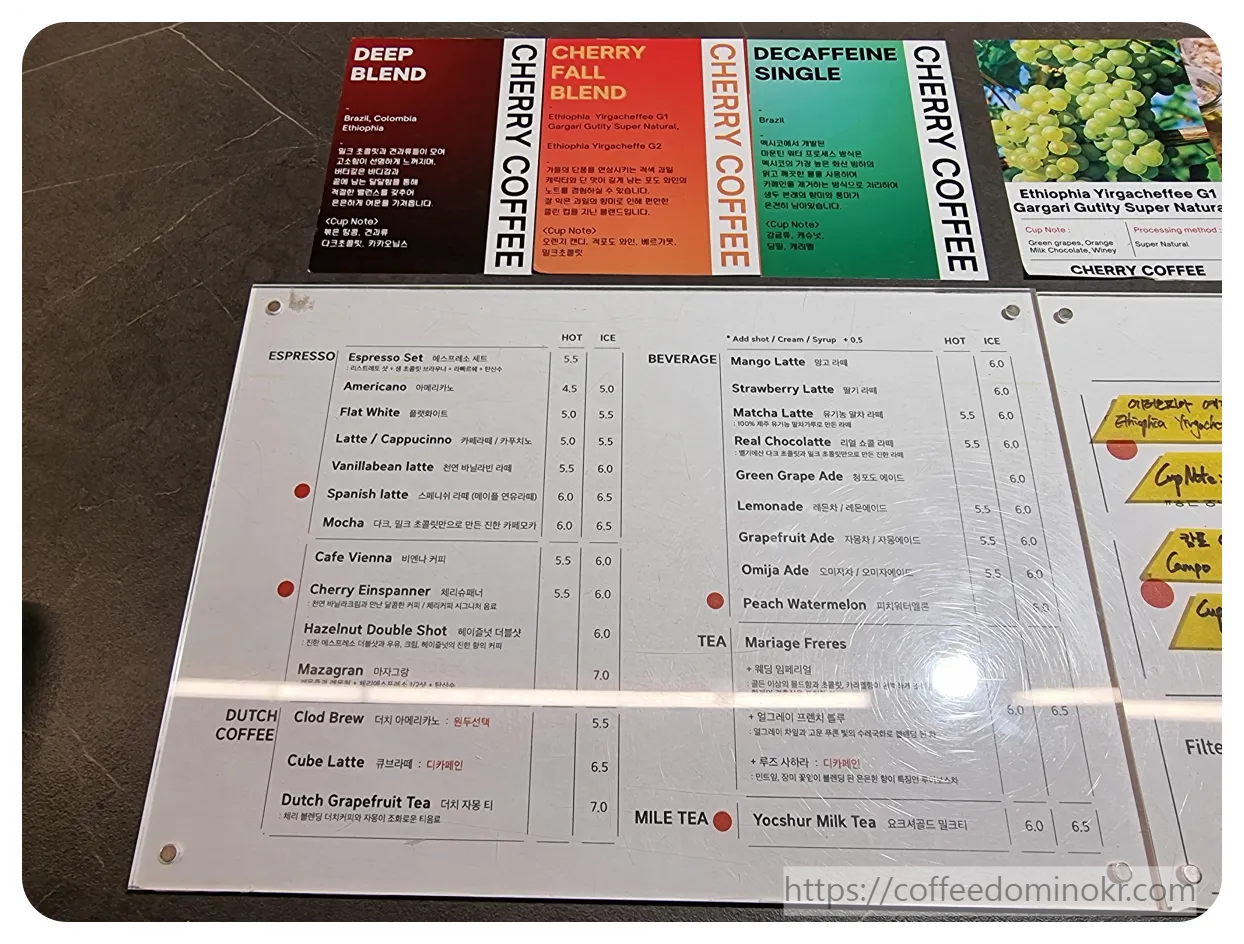 매장 이름처럼 산뜻한 체리들이 매장 유리면을 꾸미고 있었습니다 그리고 보시는것처럼
